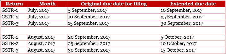 The Government has tweeted on its official twitter handle for queries on GST about the extension of due dates for submission of detailed returns in Forms GSTR 1, GSTR 2 and GSTR 3 for the months of July and August, 2017. The formal notification for extending the timelines is expected shortly. The revised compliance timelines are as follows: