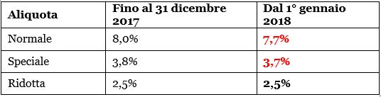 Pertanto l’aliquota normale e l’aliquota ridotta vengono ridotte nel modo seguente: