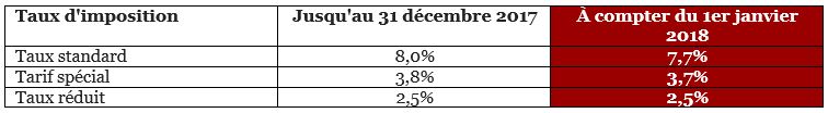 Le taux normal et spécial seront ainsi réduits de la manière suivante:
