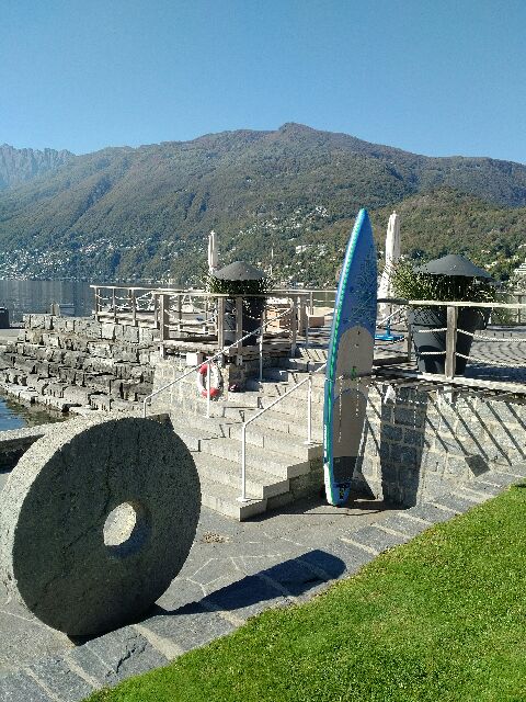 Now I’m in Tessin again and there can observe the other way of dealing with fire and the traces of the forest fires. It is October. The nights are cool, the lake has cooled down and only the few hardy people still dare to swim. I am underway with my stand-up paddle, dressed appropriately and enjoying the sun, the wonderful temperatures around 20 degrees and the peace. There are not many waves, because there are very few boats on the water. This is how I want to be on the water every day. To avoid putting away my inflatable board every day and then having to re-inflate it the next day, I leave it chained to the landing stage over night.