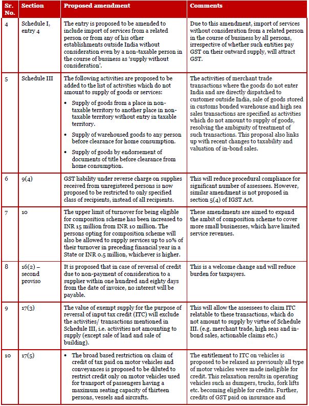 The GST Council has released a set of draft amendments in the CGST Act, IGST Act and GST (Compensation to States) Act for public comments, which are requested to be submitted by 15 July, 2018. The significant amendments proposed and its impact are described in this tax insight.