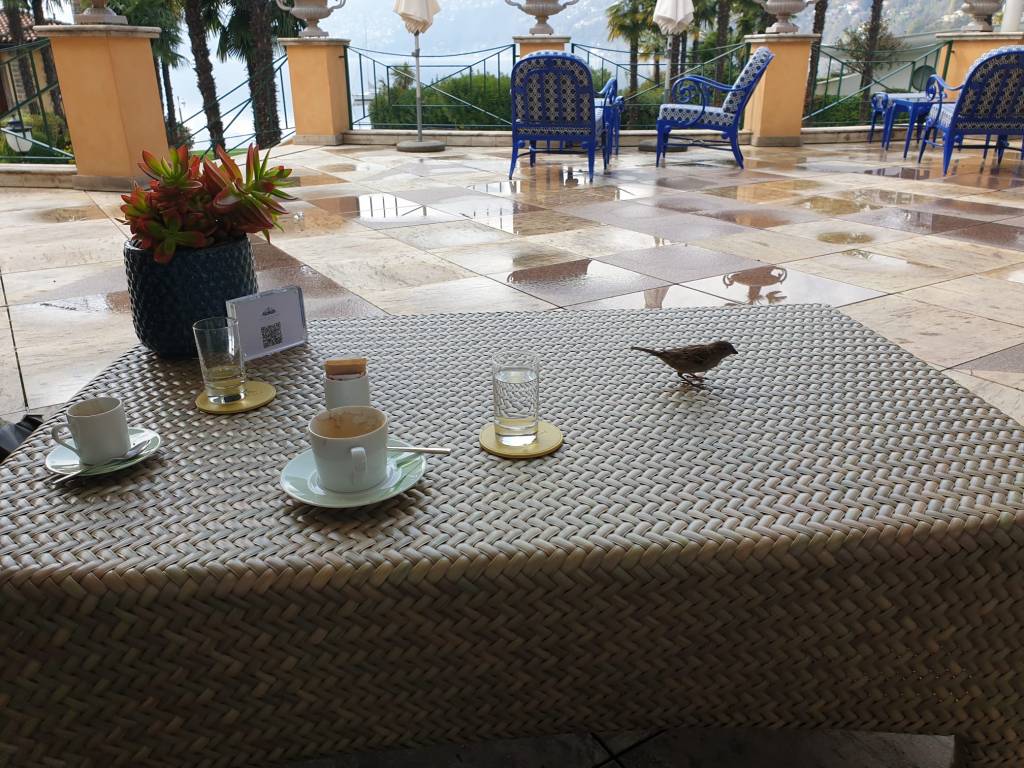 A win-win situation. I was finally able to enjoy my latte on the terrace and the sparrows filled their bellies too!!!