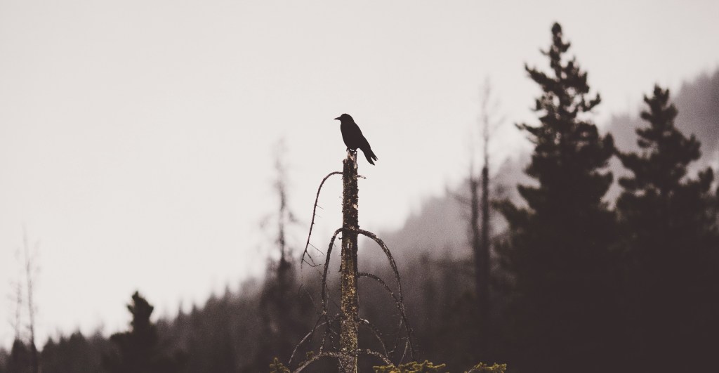 But as I climb the mountain and the flock flies high above, Alfred Hitchcock and his horror film “The Birds” from 1963 come to mind (https://www.youtube.com/watch?v=0fJh2gIBOto), where the birds suddenly go berserk. What a thought, if this flock were to target me now. My imagination runs wild, and I devise my own defense strategy. Fantastic apocalyptic images dance in my mind, and I let them develop further and enjoy the free cinema on my hike. It’s only a brief fantasy, and the crows don’t quite participate because they settle back into the trees and remain calm and still.