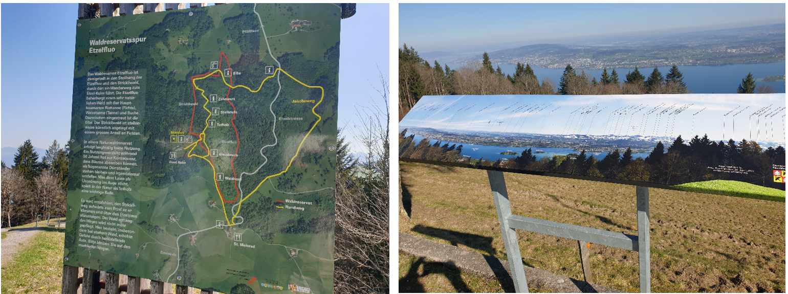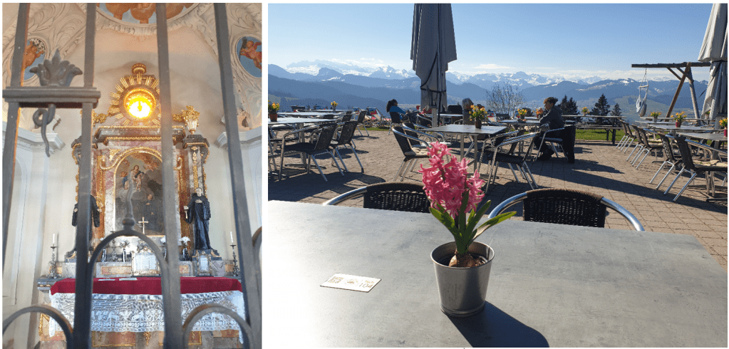 On Saturday morning, I had planned a hike to Etzel. As worn out as I was on Friday evening, I thought it wasn’t a good idea. But it turned out to be the best thing that could have happened to me. Etzel is a mountain between Lake Zurich and Lake Sihl in the canton of Schwyz. The summit is 1,098 meters high, and if you start from the Pfäffikon train station, that means starting at 412 meters above sea level. That’s a very steep 600 meters to the summit. I must admit that the steep climb to the top is not suitable for a lively conversation when hiking in pairs. You need your breath, and speaking is unthinkable on parts of this steep stretch. But the path is simply wonderful. The thoughts are only about the here and now, and it’s very connected to nature. Along the way, you can see the quarry from which the granite sandstone for the renovation of Einsiedeln Abbey and the Devil’s Bridge was used. Between 1947 and 1953, stone blocks were hewn by hand, without any machines, using hand chisels and wedges, and then transported by carts with winches into the valley. It’s fascinating to imagine how the people managed that back then.