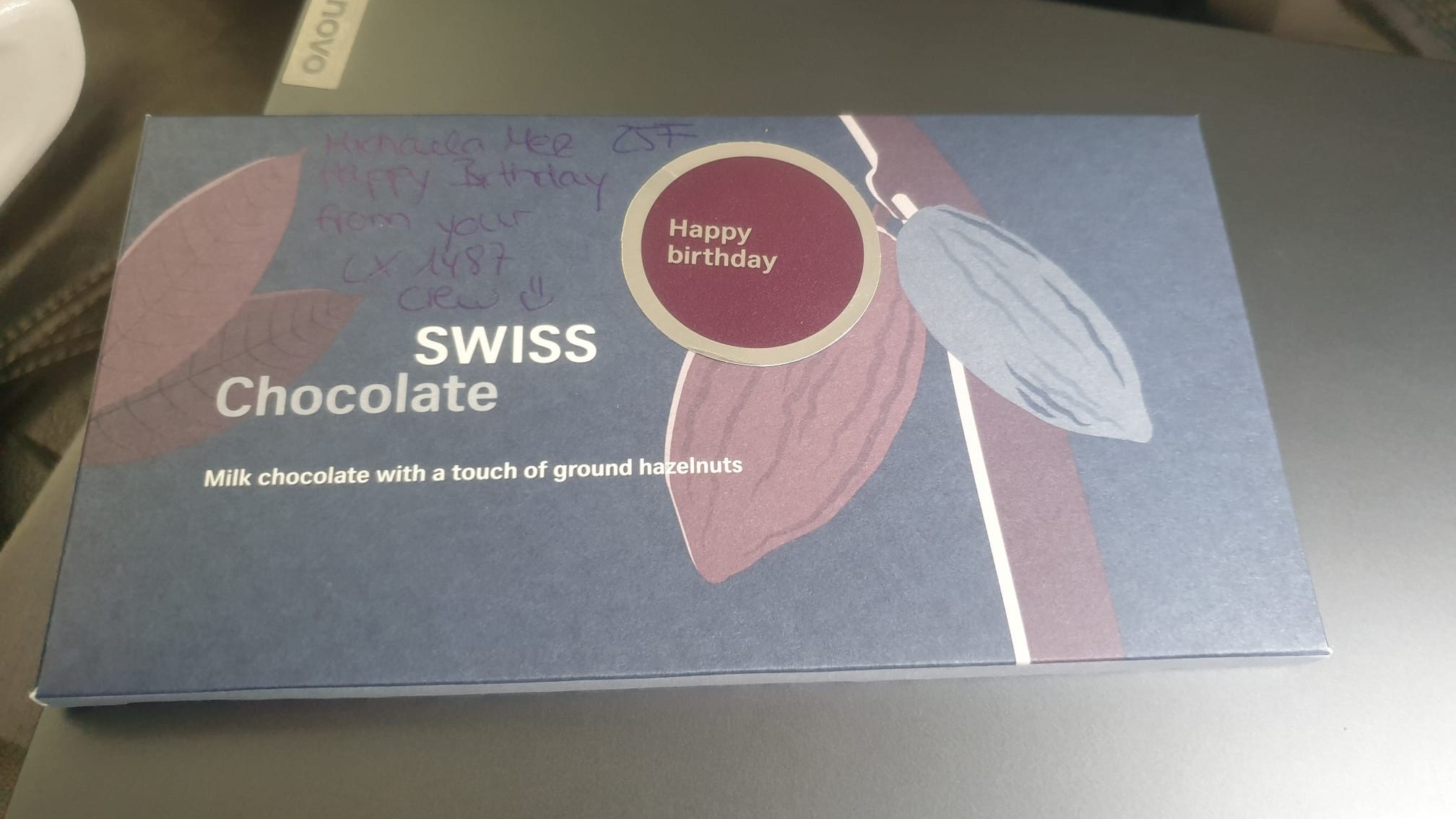 I visited my mom recently to help her adjust her hearing aids. Now I’m flying back home on my birthday. I settle into my seat – and since I bought a super cheap ticket, I wasn’t surprised to be seated in the last row, just like on the outbound flight. Paying extra to sit 15 rows forward isn’t worth it to me. I can read and think anywhere. I sit down, open my laptop, and start working. Then the flight attendant comes up to me and asks if I’m Ms. Merz. Yes, I am. She congratulates me and hands me a bar of chocolate. And that got me. The unexpected touched me emotionally. Well done, Swiss – I truly appreciated this gesture.